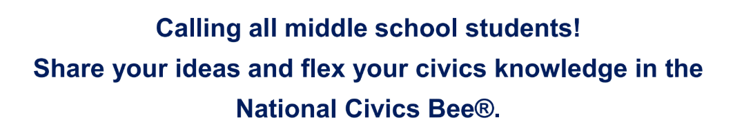 Visit www.nationalcivicsbee.org for the latest news on the application portal, entry deadlines, and resources. Students should review the Contest Rules below and then apply using the following link: 2026 National Civics Bee Application Link